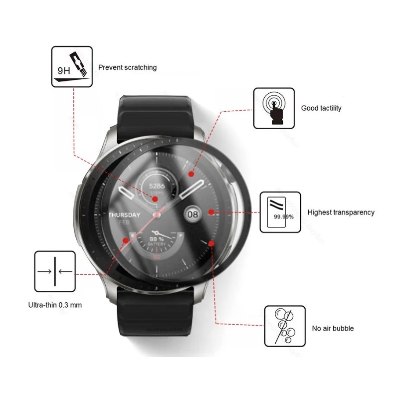 Temperované sklo pro chytré hodinky Amazfit GTR 4 se v případě prudkého nárazu rozbije, vždy ovšem zůstane vcelku. Při prudkém nárazu dokáže pohltit velkou část energie, která se uvolní prasknutím, tím zabrání poškození samotného displeje hodinek.