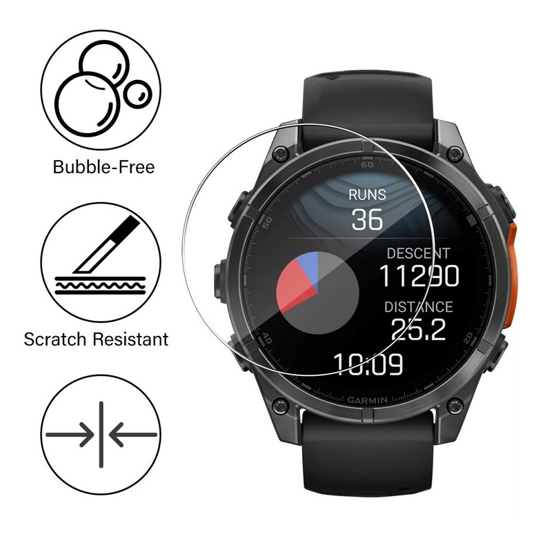 Tvrzené sklo o tloušťce 0,33 mm pro maximální ochranu displeje chytrých hodinek Garmin Fenix 8 43mm.