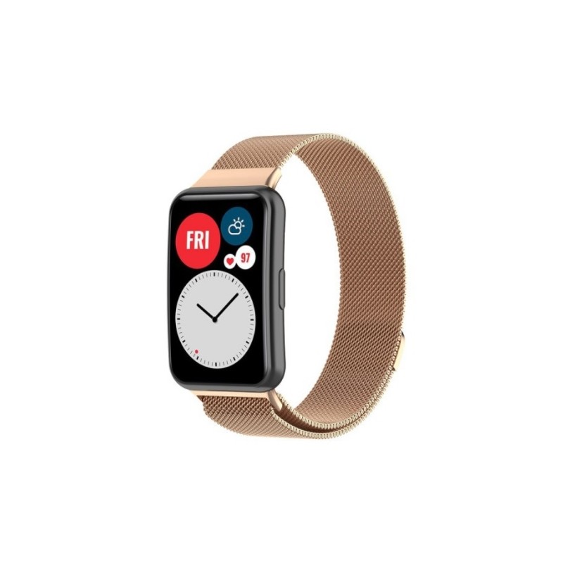 1x řemínek Milánský tah pro Huawei Watch Fit růžovo-zlatý