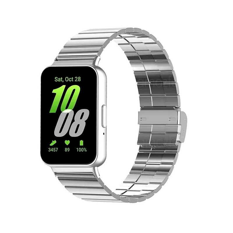 Kovový panelový řemínek pro hodinky Samsung Galaxy Fit 3. Elegantní pásek vyroben z kvalitní nerezové oceli. Odstraněním jednotlivých dílků řemínku lze upravit jeho délku.