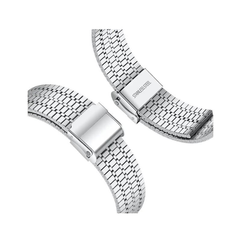Kovový řemínek pro hodinky Samsung Galaxy Watch 5 44mm. Elegantní pásek vyroben z kvalitní nerezové oceli. Velikost pásku pro Samsung Galaxy Watch 5 44mm lze nastavit posunem zapínání pomocí šroubováčku.