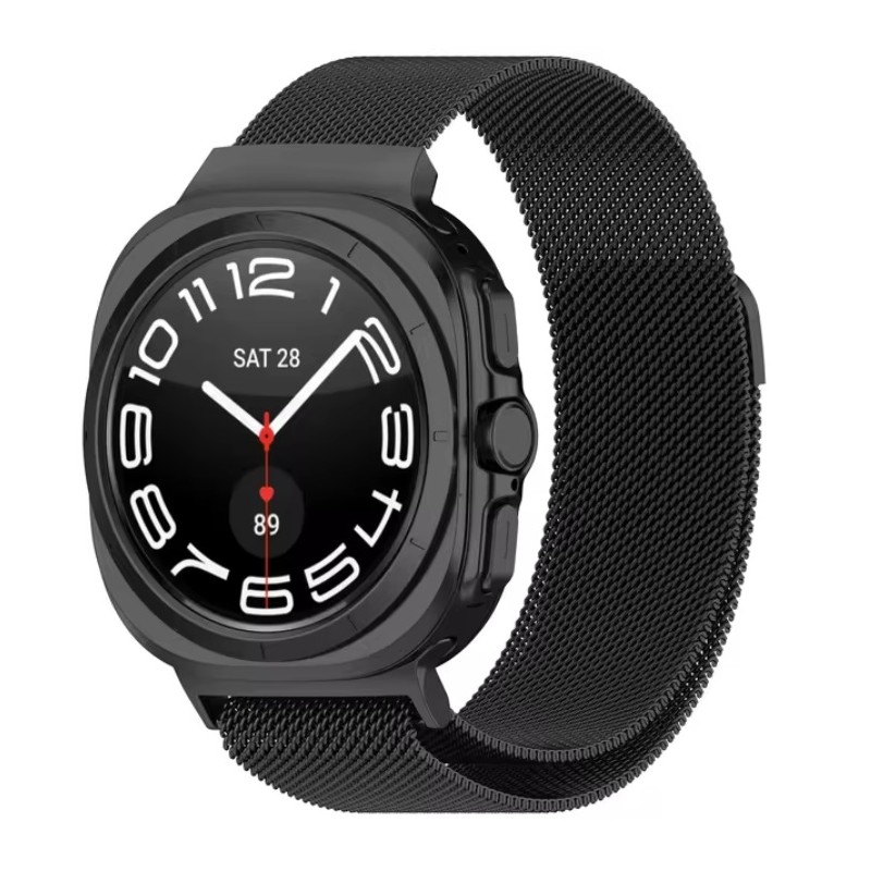 Kompatibilita s hodinkami Samsung Galaxy Watch Ultra 47mm. Tento stylový řemínek je k dispozici v různých povrchových úpravách, které vám umožní vyjádřit váš jedinečný styl. Vyberte si Milanese a užijte si luxusní vzhled vašich Samsung Galaxy Watch Ultra 47mm.